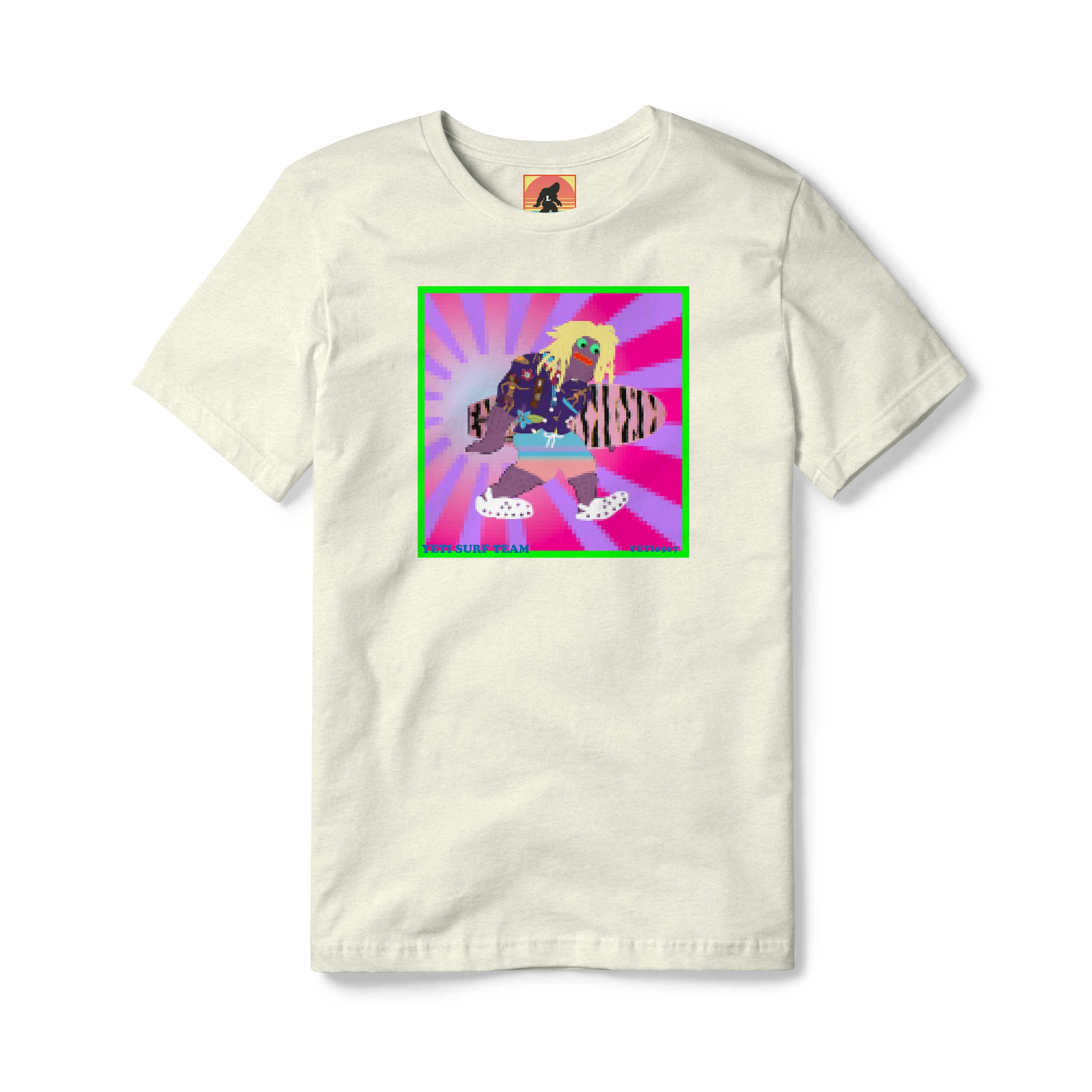 This is your chance to get your very own 1 of 1 Yeti Surf Team Tee. NO one else in the world will have this tee because every single Yeti Team Member is uniquely created from over 250 unique variables creating more than 2 trillion different possibilities. This first run will be limited to 888 tees! Be one of the first. Your Tee Shirt order also comes with 3 custom stickers of your own unique Yeti!